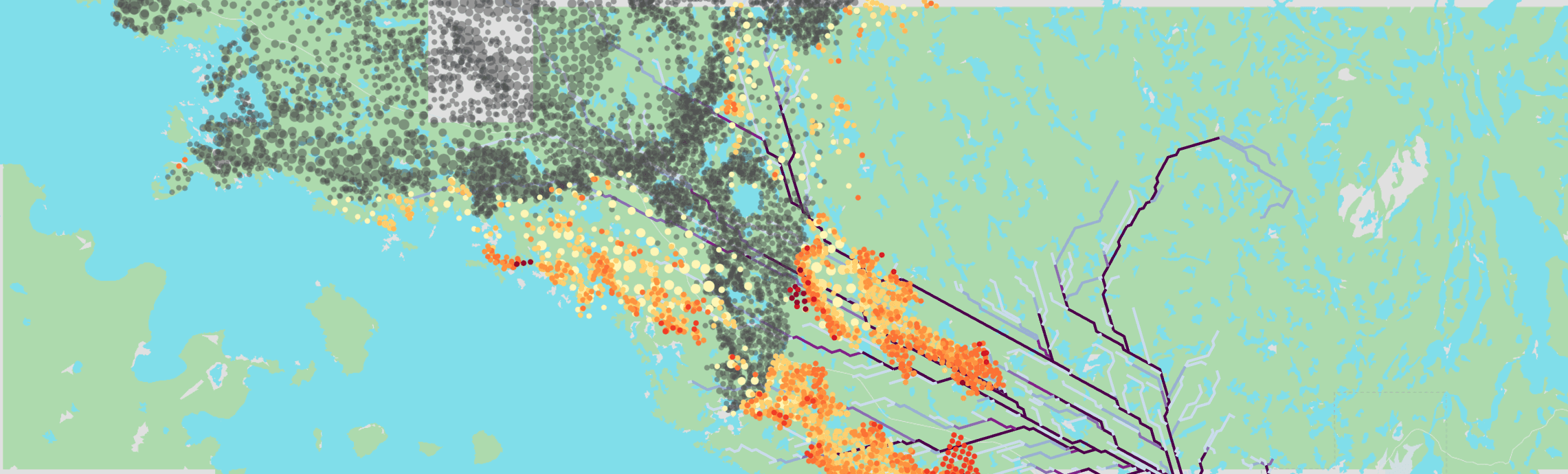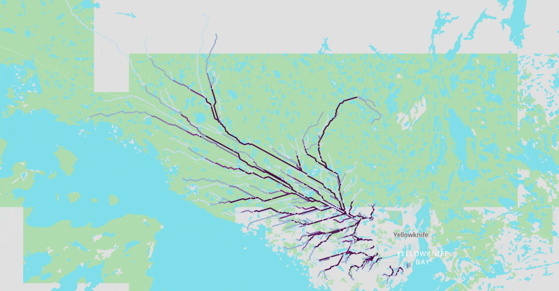 This is an example of what fire corridors look like with M3 hotspots overlaid. This is the Yellowknife corridor data with 2023's hotspots.